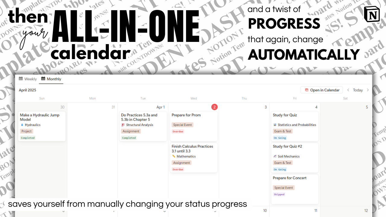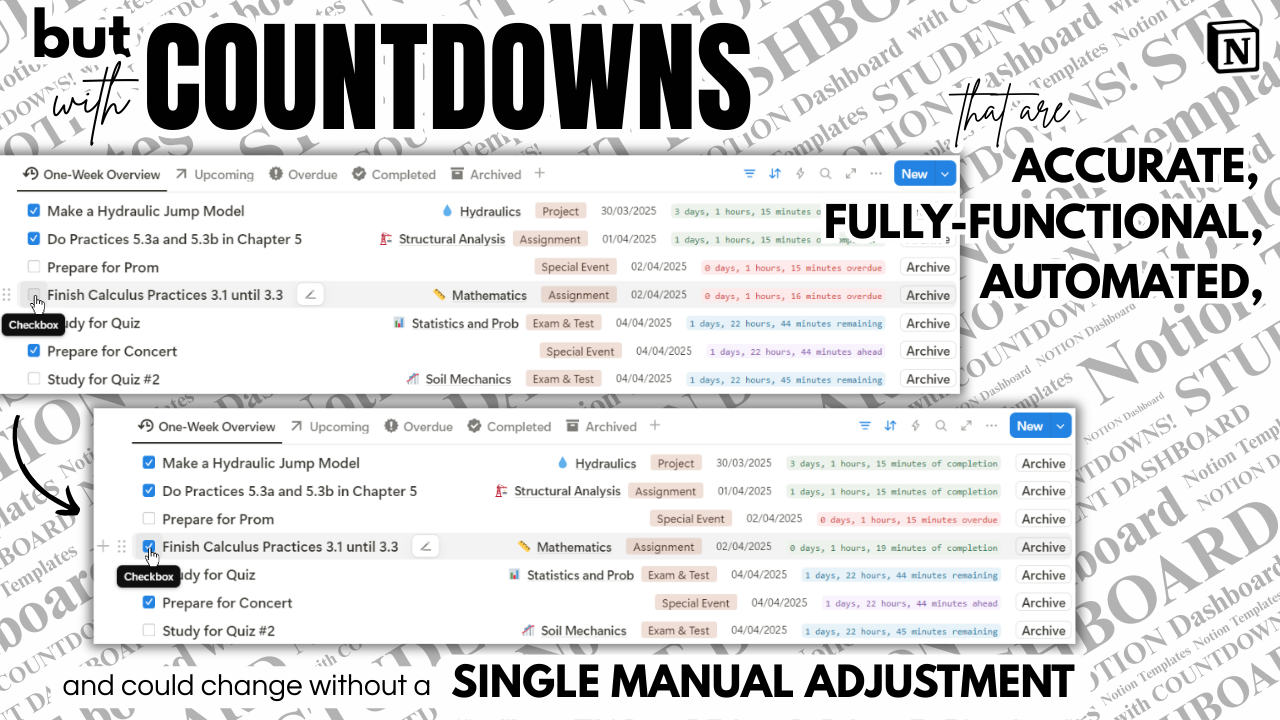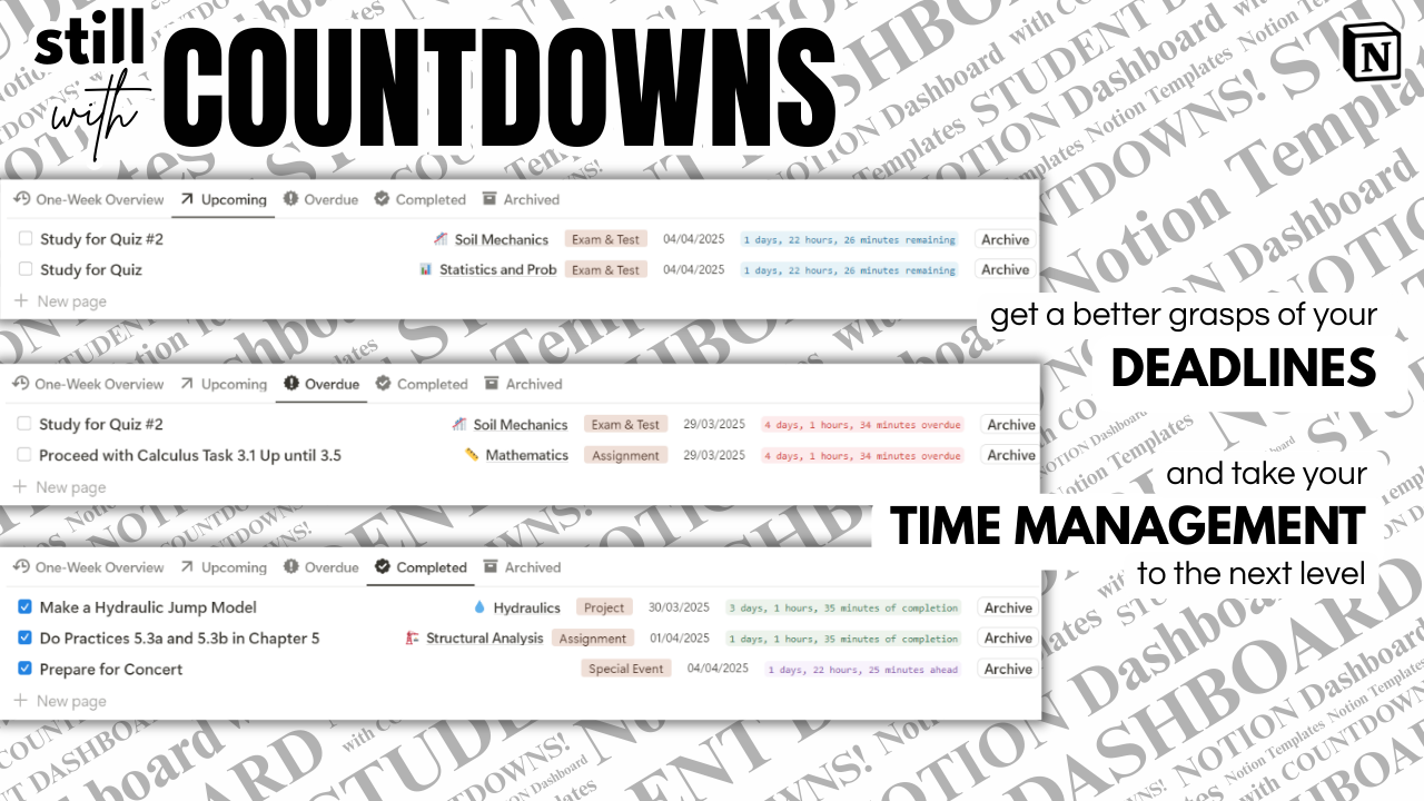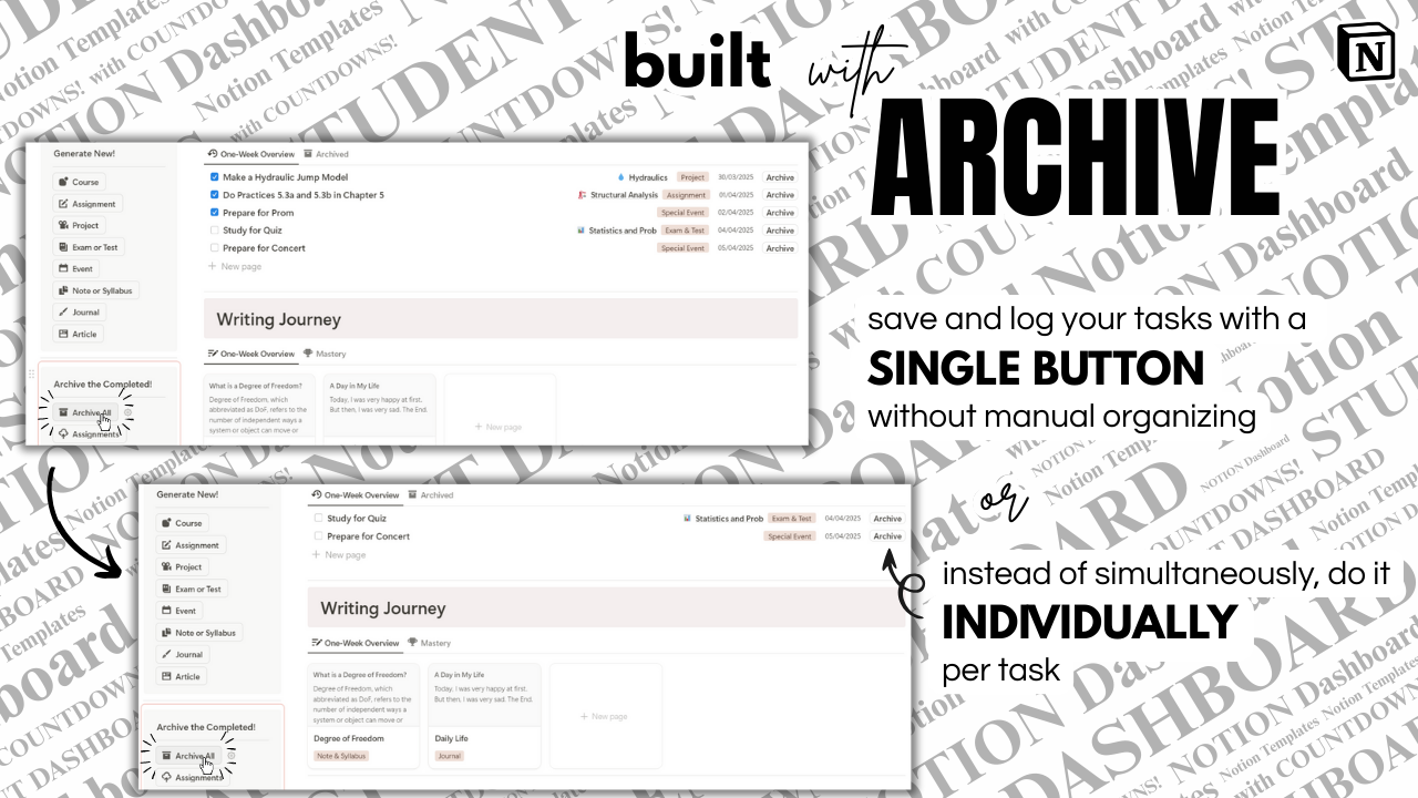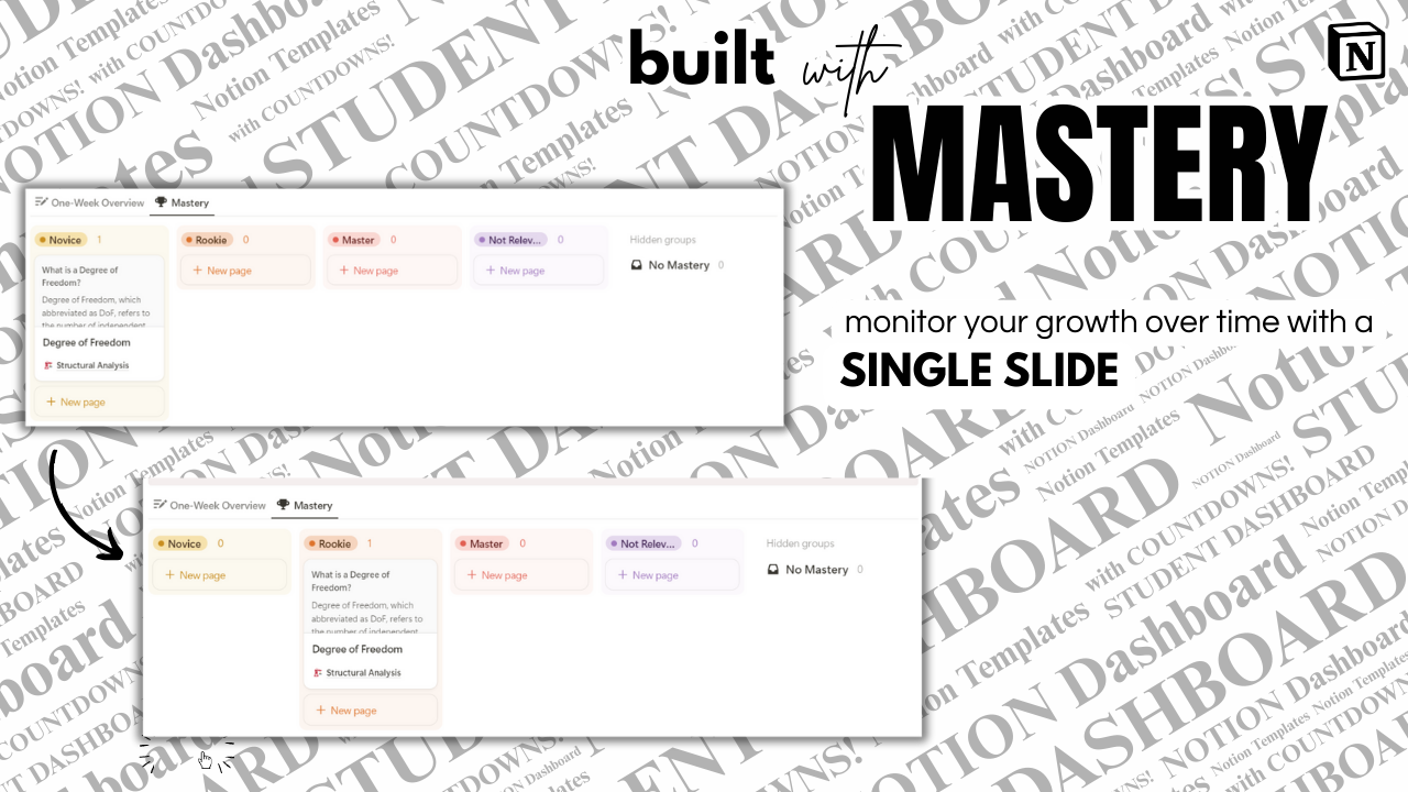 A smart Notion dashboard with countdowns, archiving, and mastery tracking — made for students who want to stay organized and grow.